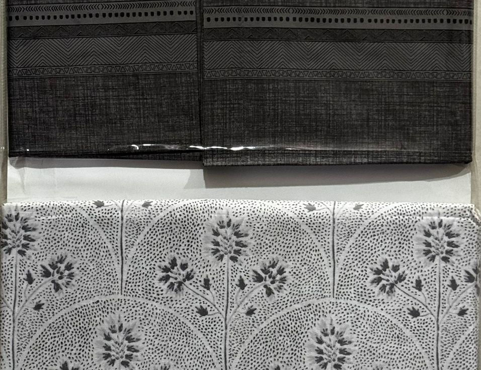 The Trident Salt and Pepper bedsheet is a premium offering crafted from 100% cotton, known for its comfort, breathability, and stylish appearance.